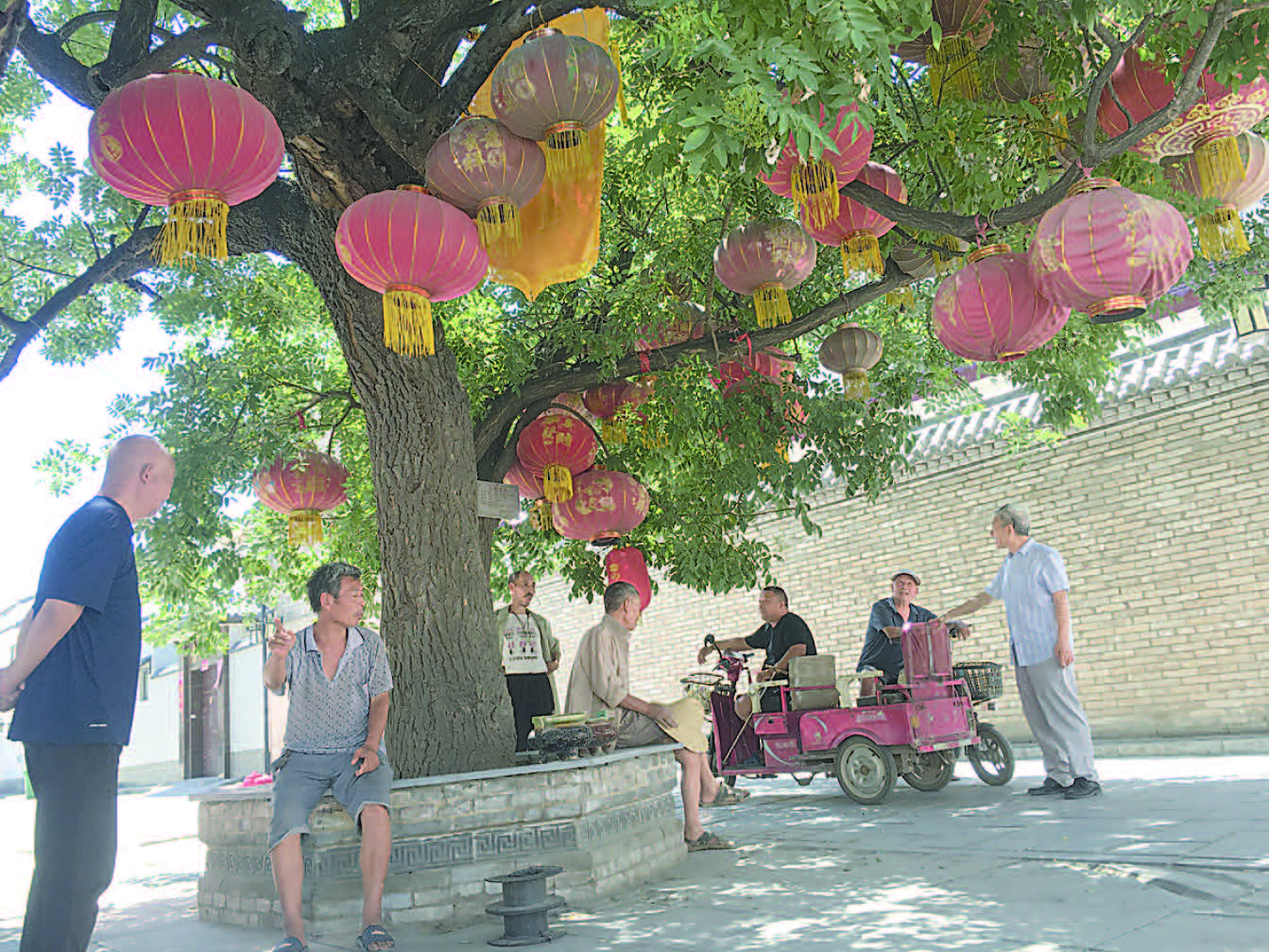 太阳似火,村中王氏宗祠门前那棵300多年的老槐树下,是个乘凉的好地方。虽历经百年风雨,它却枝繁叶茂,荫泽子孙。以老槐树为中心点,寨卜昌明清古建群分列东西。高高的门楼,飞檐斗拱,厚实的老墙砖讲述着岁月。